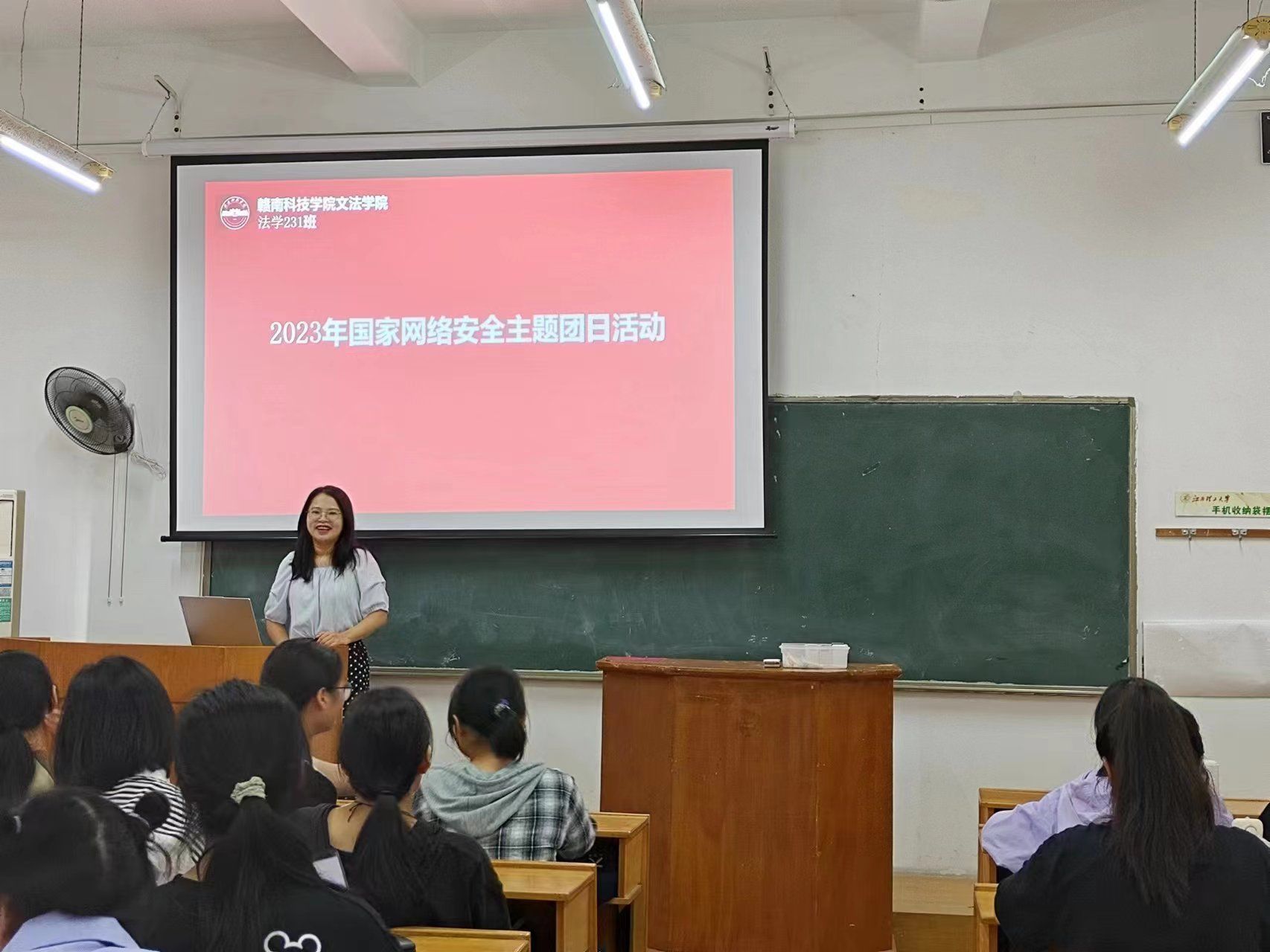 统筹谋划,认真部署。为使本次主题团日活动得到切实有效地开展,法学231班班主任张兰芳老师通过班会对网络安全宣传活动作了详细部署,明确了各人员的职责。号召同学们以“赣州网络安全宣传周”为契机,将主题团日活动与网络安全宣传教育活动相结合,积极对本次活动建言献策,将主题团日活动的参与对象扩大至全班同学,得到了班上同学的热烈响应。