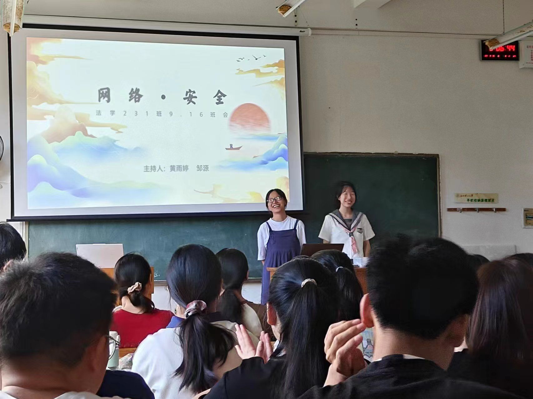 金陵秋风起,又是开学时。风华正茂,梦从今天扬帆起航;意气风发,志在这里华美绽放。为增强同学们的网络安全意识,进一步构建和谐平安校园,9月16日,借“赣州网络安全宣传周”之契机,yL23411永利官网登录新生法学231班精心组织策划并开展了“强化学生安全教育,筑牢网络安全防线”的主题团日活动,号召全班同学共同学习网络安全知识,增强网络安全意识。