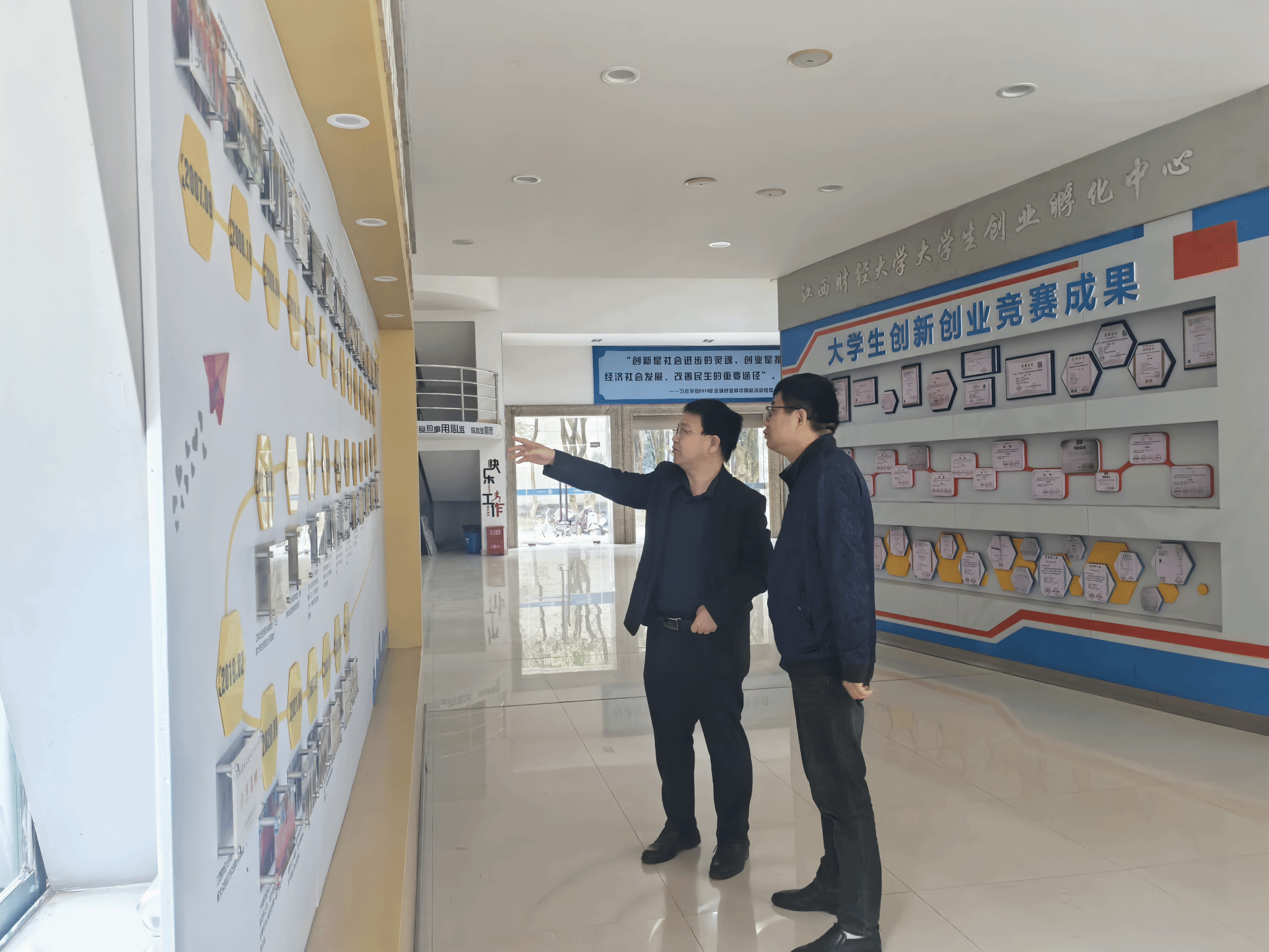 11月1日,yL23411永利官网登录一行参观了江西财经大学大学生创业孵化中心,并就近几年大学生创新创业、学科竞赛相关成果进行了座谈交流。座谈会由江西财经大学教务处副处长胡少勇主持,统计与数据科学学院副院长刘庆以及相关教师共同参加。座谈会上大家就全国大学生统计建模大赛等学科竞赛的组织和指导畅所欲言,气氛热烈融洽。会后双方共同表达了对未来进一步增进交流、共享资源等方面的殷切期待。