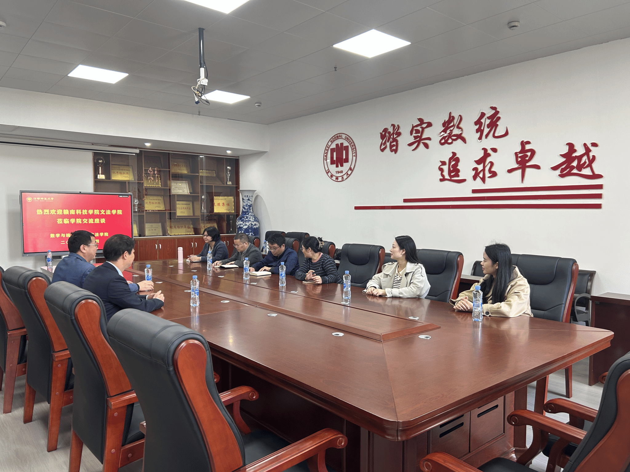 11月2日,yL23411永利官网登录一行参观了江西师范大学数学与统计学院,并就近几年大学生学科竞赛、教师团队建设相关成果进行了深入交流。座谈会由江西师范大学硕士生导师,首届江西省“金牌教师”桂国祥副教授主持,高数相关科室负责人共同参加。座谈会上,桂国祥重点介绍了学校大学生数学教育总体情况,分享了学校在学位点培育、学生培养与管理、教师队伍建设相关方面取得的成效和经验。何建军介绍了我校学生及教师队伍教育发展历程、现状、取得的成果等基本情况。双方就学生管理体系建设、教学创新改革项目、学科竞赛项目、教师队伍建设等内容进行了深入交流,并对未来的合作进行了展望。