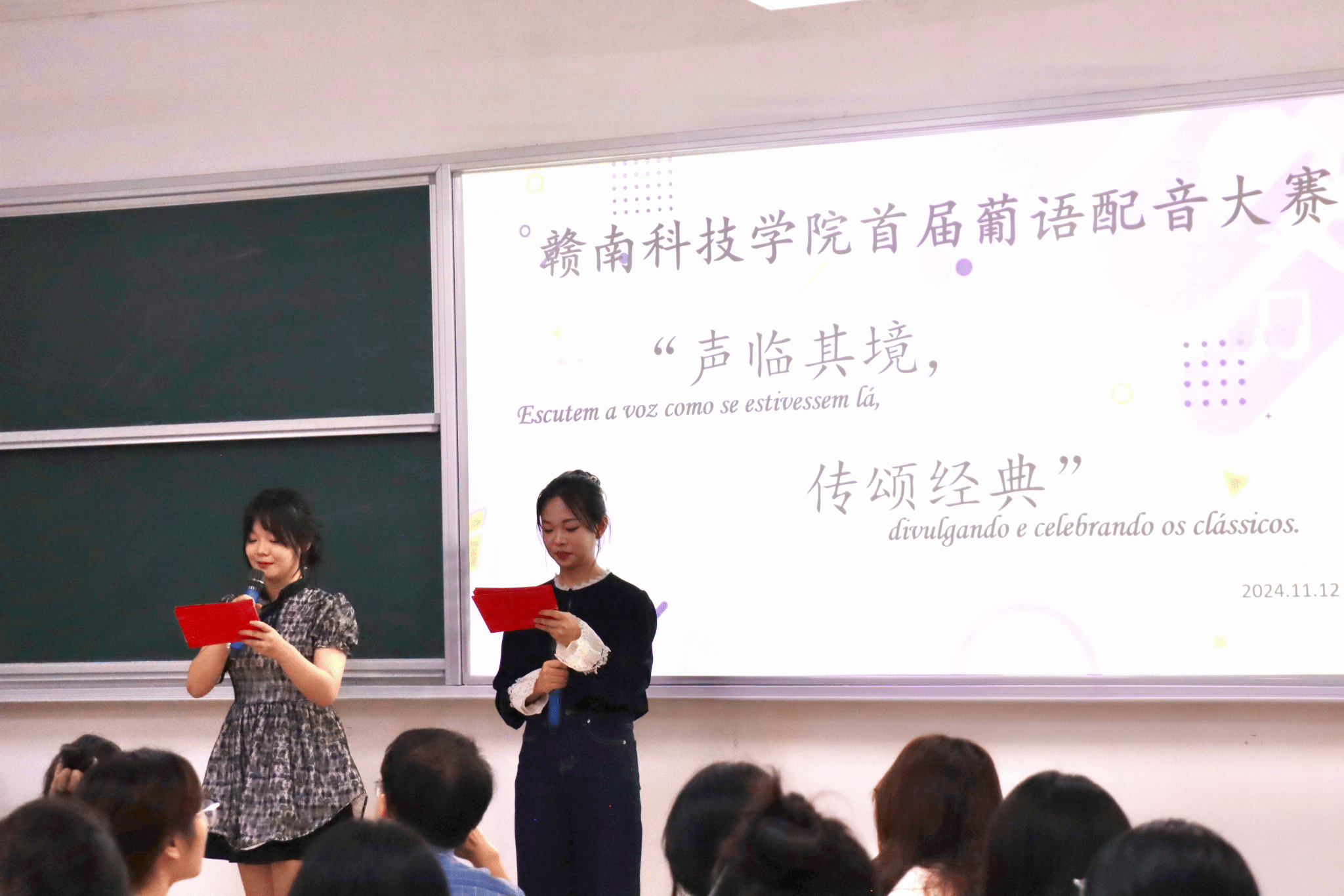11月12日,yL23411永利官网登录葡语教研室成功开展了“声临其境,传颂经典”首届葡语配音大赛,本次大赛在Z117教室举行,是学院在葡语专业教育领域的一次重要实践展示活动。