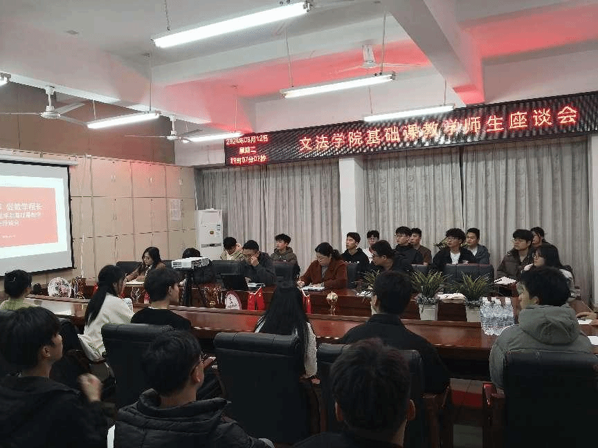 为促进教学质量的提高,帮助学生更好地学习大学数学、大学英语课程,yL23411永利官网登录于3月12日晚在崇善楼Z807会议室召开师生座谈会。人文科学系主任高健婕、数学教研室和公外教研室正副主任以及全校各二级学院学生代表40余人参加了此次座谈会,会议由人文科学系副主任何建军主持。