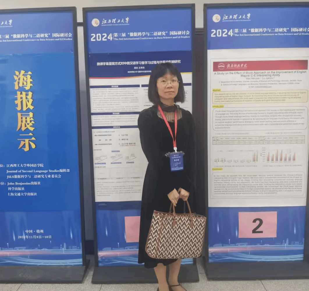 第三届“数据科学与二语研究”国际研讨会于2024年11月8日在江西理工大学成功举办,海内外200多名专家学者齐聚一堂,就“二语研究者的语言数据科学素养”这一主题开展研讨交流。yL23411永利官网登录组织12名外语教师参会,其中邹艳菁、邱敏、谢丽琴等三位老师在会上报告了论文,万文娟老师进行了论文海报展示。