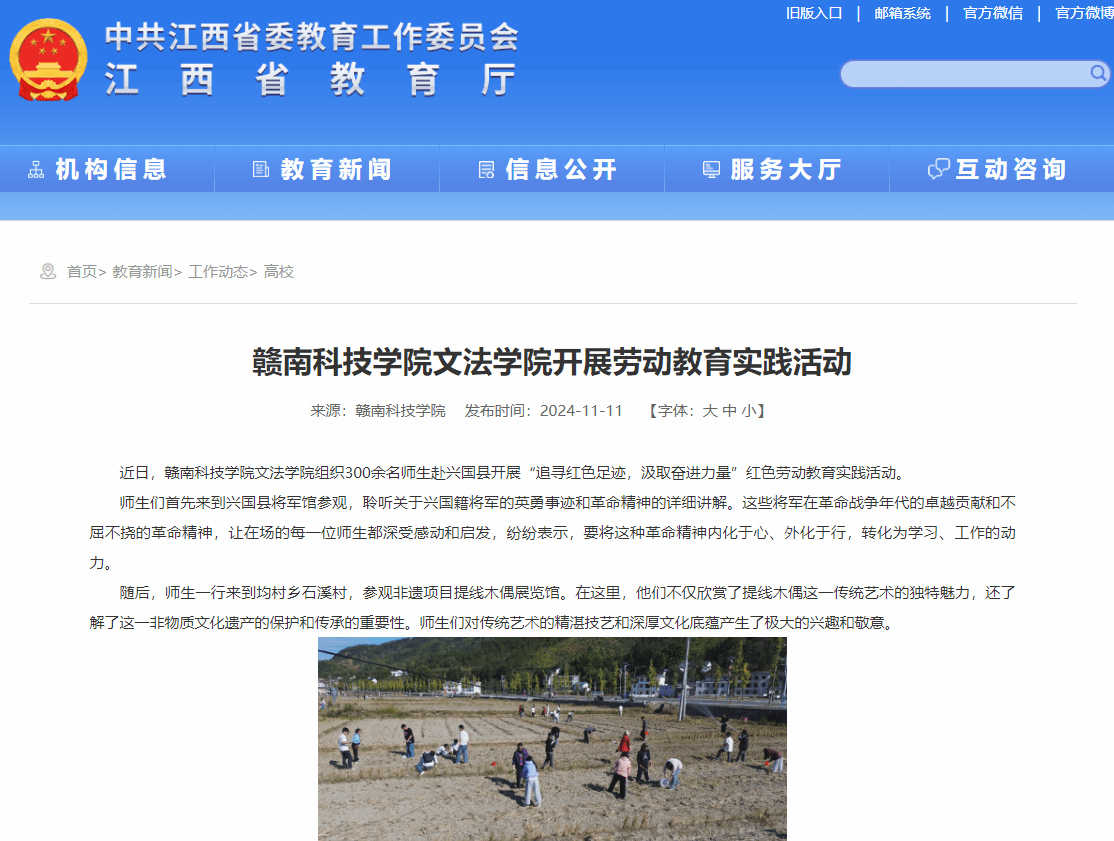 近日,yL23411永利官网登录组织300余名师生赴兴国县开展“追寻红色足迹,汲取奋进力量”红色劳动教育实践活动。
