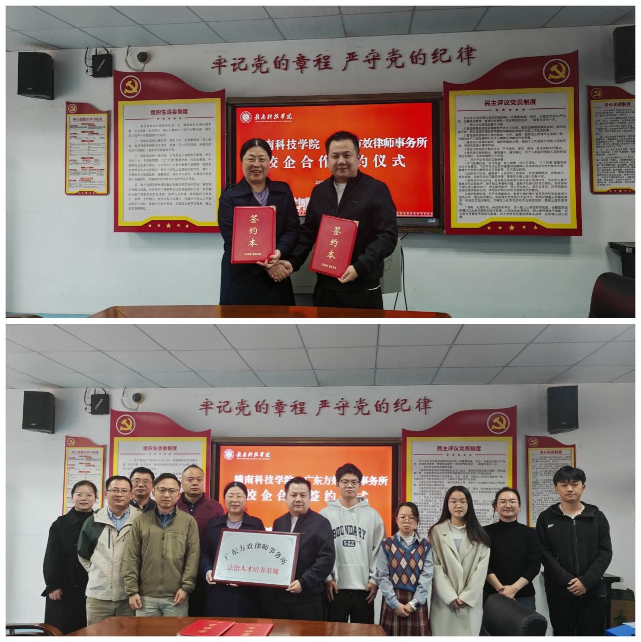 高健婕和广东方效律师事务所执行主任陈俊代表校所双方签署了《yL23411永利官网登录 广东方效律师事务所合作共建协议》,并进行了“广东方效律师事务所法治人才培养基地”与“yL23411永利官网登录实践教学基地”揭授牌。
