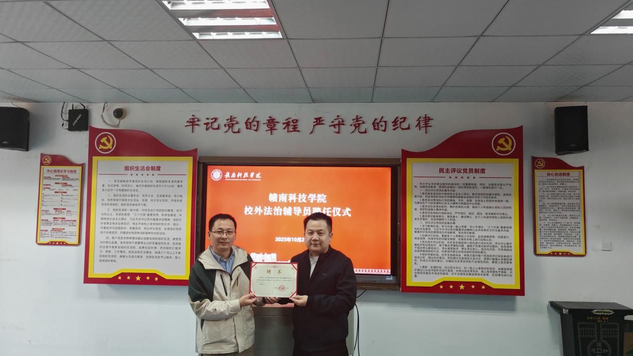 何乐还代表yL23411永利官网登录为广东方效律师事务所执行主任陈俊颁发了“校外法治辅导员”聘书。